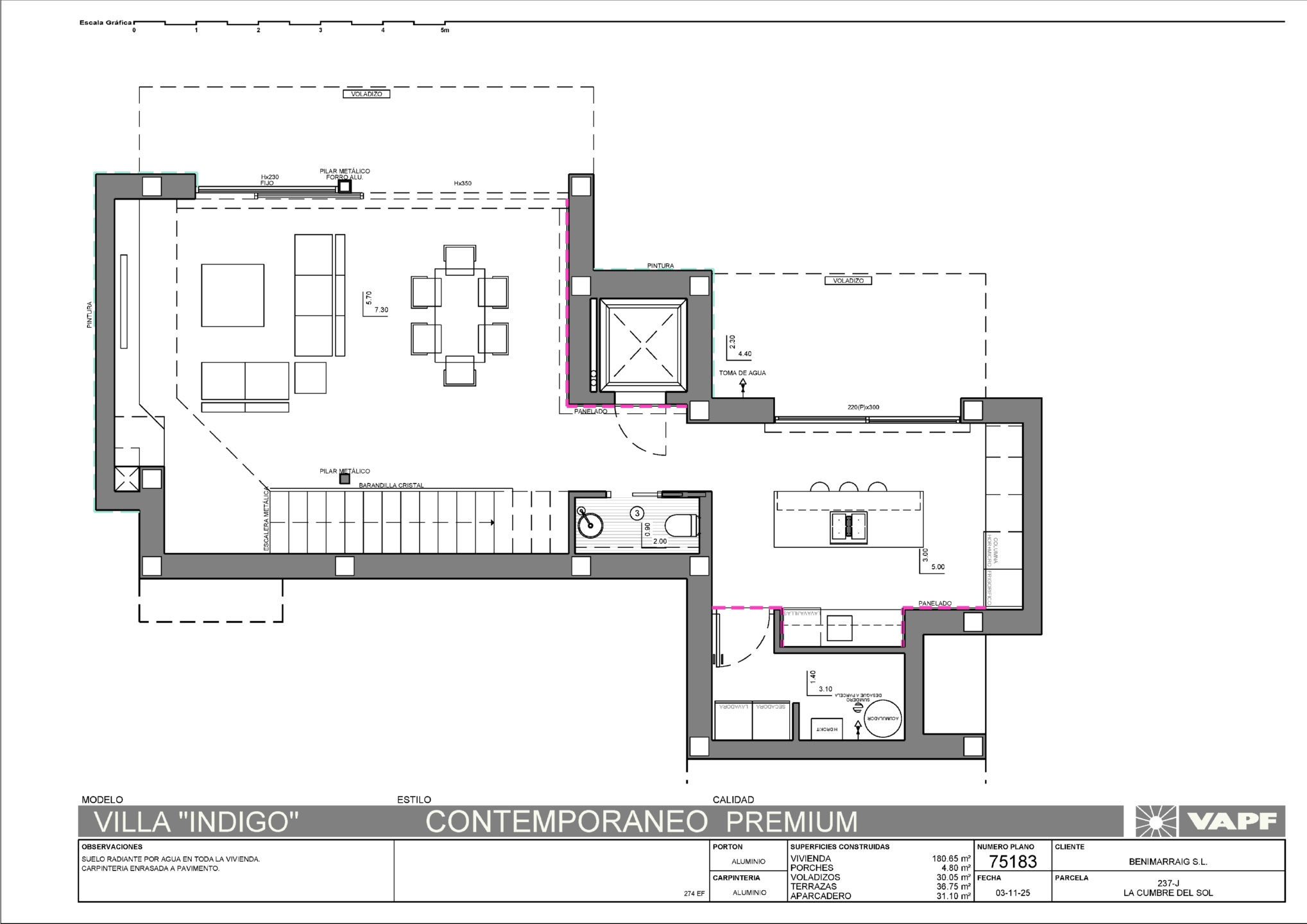 When the land and architecture fall in love, the result is Villa Indigo, a luxury villa with a balanced and functional aesthetic, set in a spectacular environment within the Jazmines Residential Area in Cumbre del Sol, one of the most sought-after destinations for those looking to establish a new home in Spain.