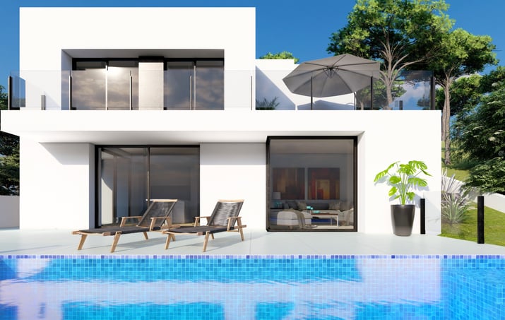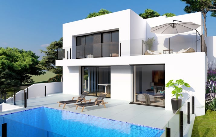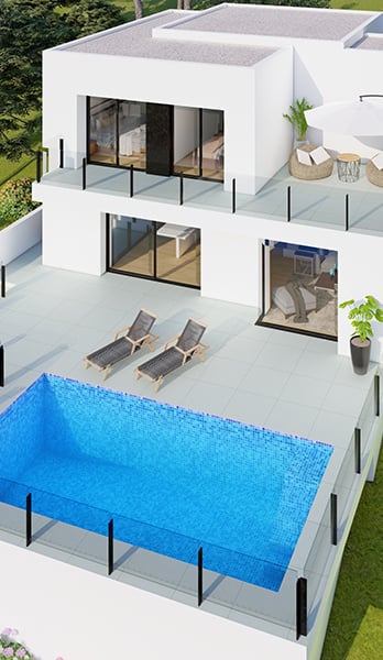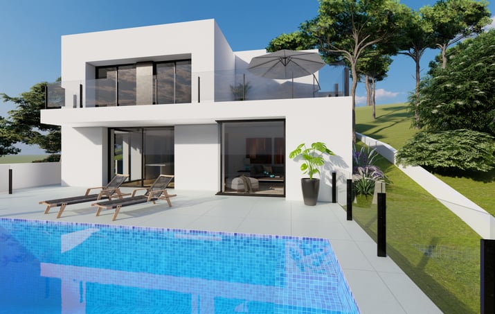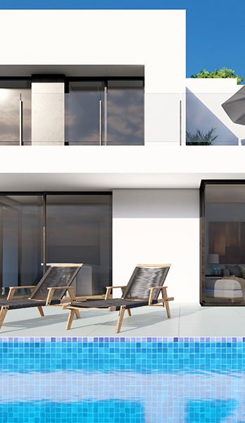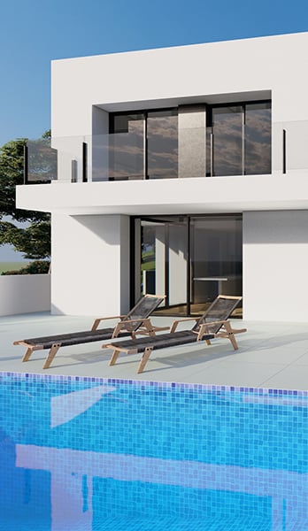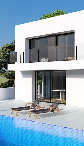 The exterior of Villa Oasis reflects the essence of the Costa Blanca lifestyle. The spacious terraces, private pool and garden with native vegetation create an intimate and relaxing space, perfect for enjoying the climate all year round. Every detail is designed to make the most of the contact with nature and the comfort of a single-family home.