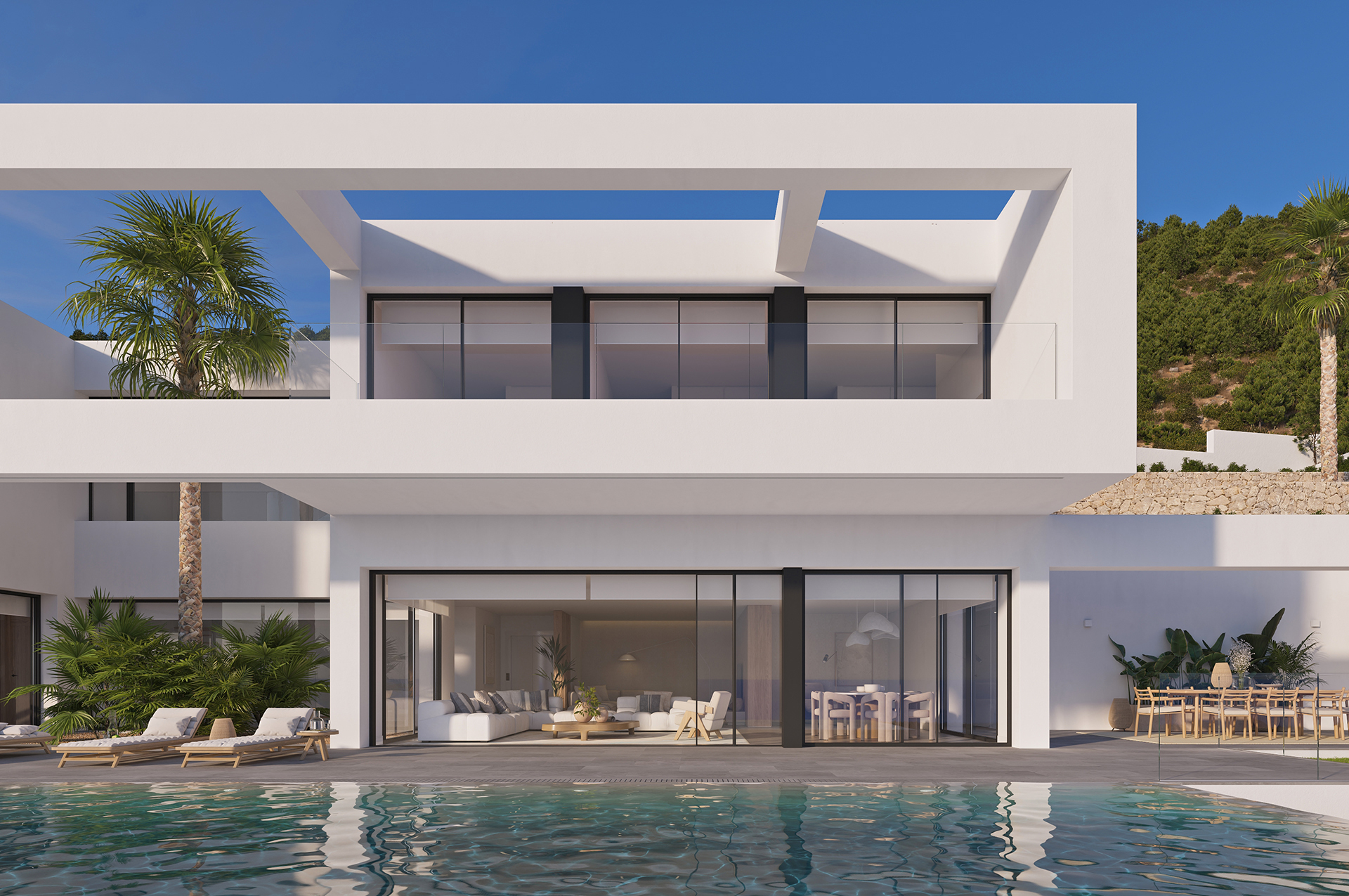 En este escenario de lujo y naturaleza, Grupo VAPF ofrece dos exclusivas formas de disfrutar Racó de Galeno. Por un lado, la Villa Irati, una impresionante vivienda de arquitectura contemporánea que combina espacios luminosos, materiales de alta calidad y una piscina infinita orientada al mar. Una residencia única para experimentar la Costa Blanca desde el confort más absoluto.