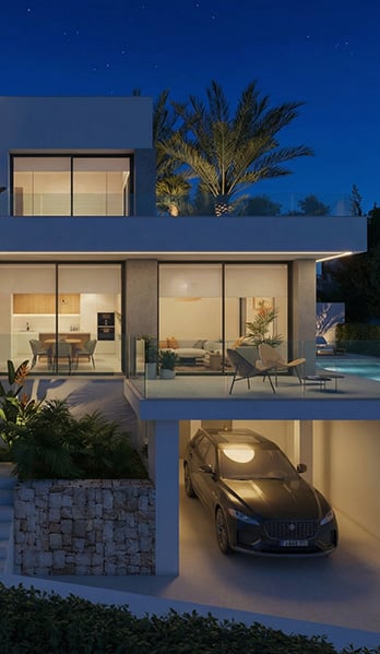 El exterior completa esta experiencia con zonas ajardinadas, garaje y una parcela que asegura privacidad y tranquilidad. Villa Bianca no es solo una vivienda: es una forma de vivir el Mediterráneo con serenidad, estilo y bienestar.