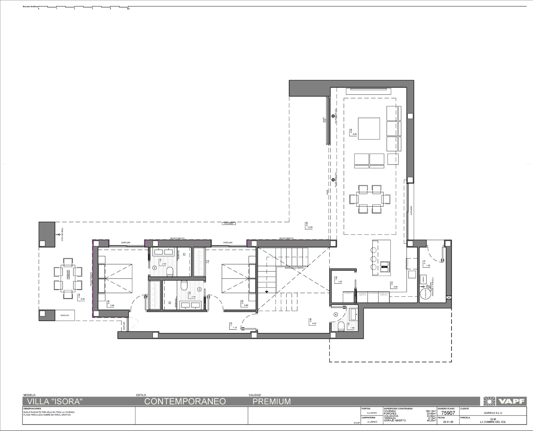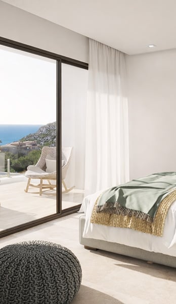 El chalet cuenta con elegantes dormitorios, todos con acceso a terraza. El dormitorio principal, un verdadero oasis de tranquilidad, ofrece un vestidor y un baño en suite con acabados de lujo. Despertarse cada mañana con la brisa marina y las impresionantes vistas es un verdadero place que te brindan las villas en Cumbre del Sol.