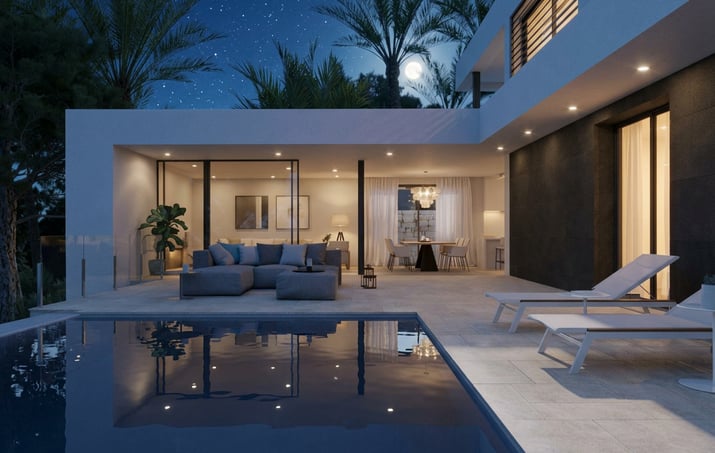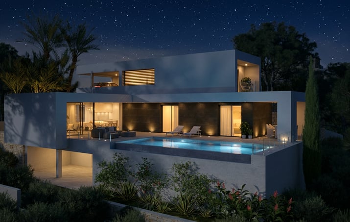 Descubre este impresionante chalet de lujo diseñado para disfrutar de la vida mediterránea en todo su esplendor. Ubicado en una de las zonas más exclusivas de la Costa Blanca, en el Residencial Magnolias en Cumbre del Sol, este chalet de lujo ofrece una combinación perfecta de arquitectura moderna, diseño interior elegante y vistas inigualables al mar.
