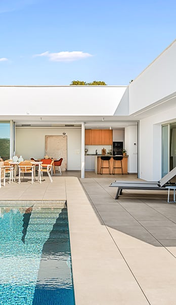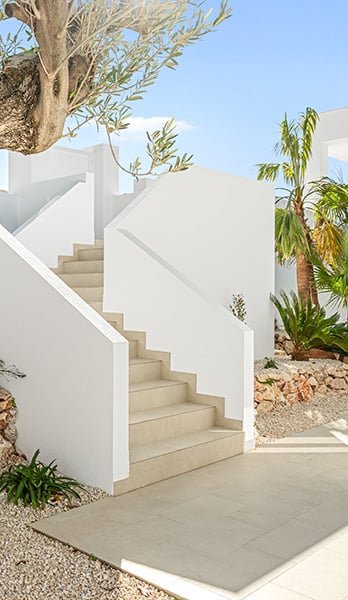 El estilo contemporáneo de Villa Nara se funde con la tradición mediterránea, creando un espacio armonioso y equilibrado que invita a la relajación y al disfrute de los sentidos. El jardín principal, con su vegetación mediterránea y sus plantas aromáticas, te conecta con la naturaleza.