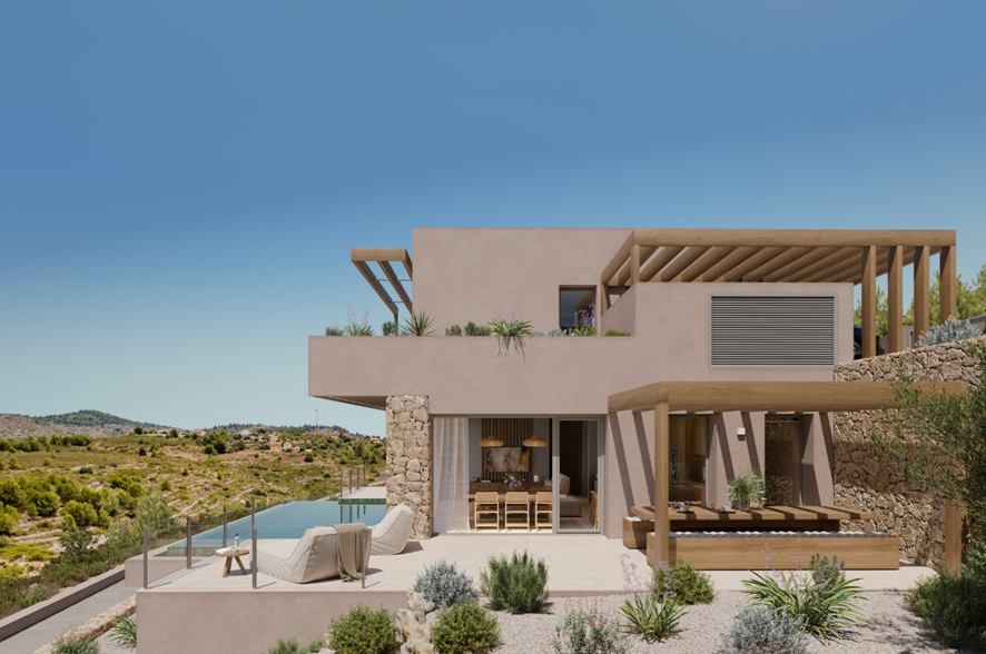 Des projets comme Airen Collection dans la Vall de Pop ou nos villas à Magnolias à Cumbre del Sol reflètent cette approche du design : une architecture avec identité, la lumière naturelle comme axe central et une véritable intégration au paysage méditerranéen.
